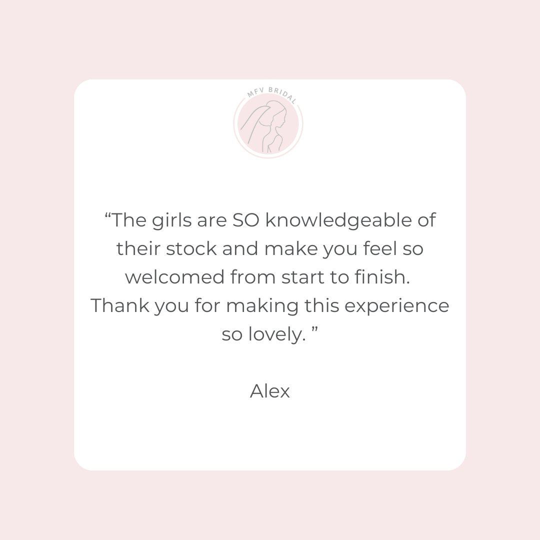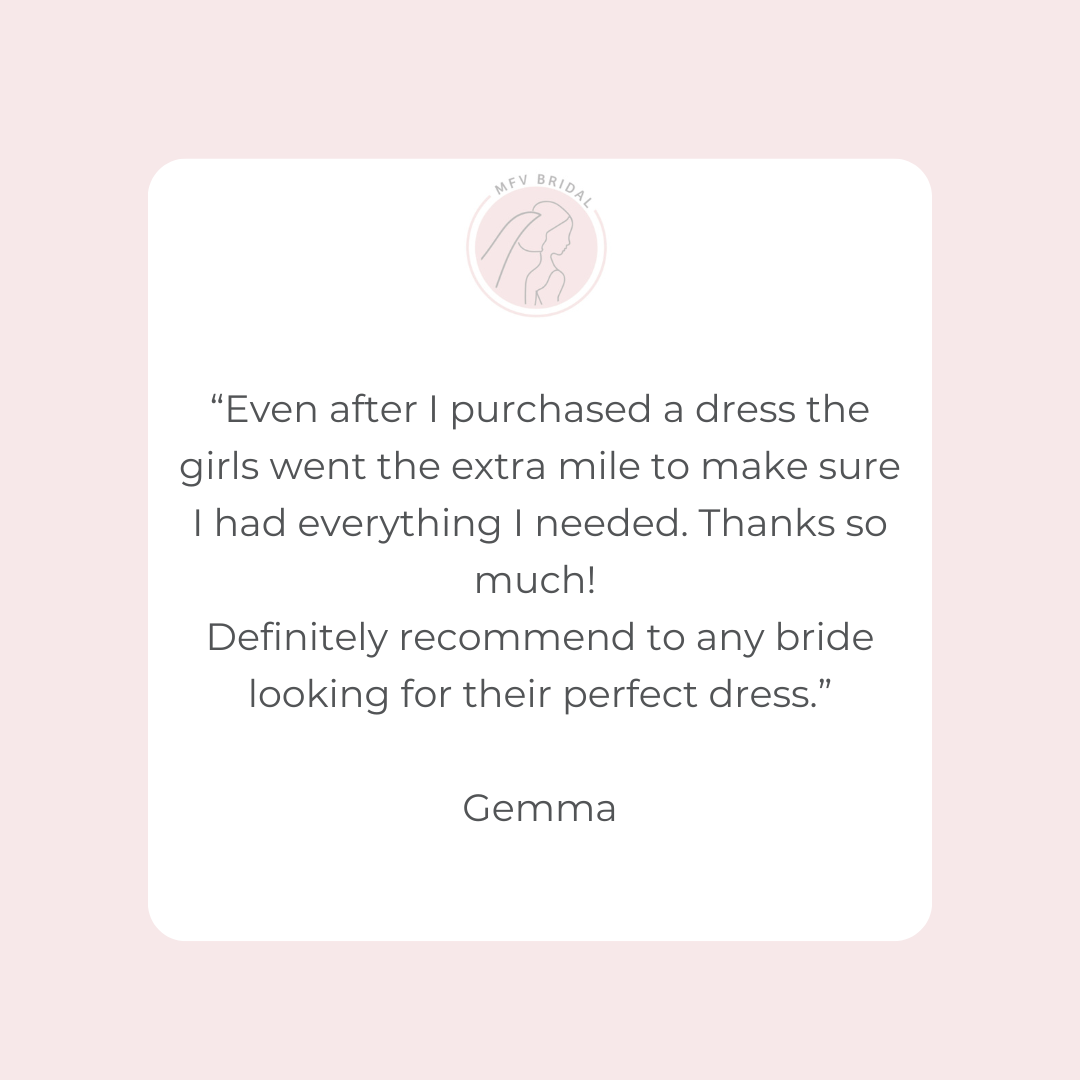 We are proud to offer a full bridal service from purchasing your dream wedding gown, bridesmaid dresses and accessories, to assisting with your alterations through our amazing recommended seamstresses, making the process as stress free and enjoyable for you.